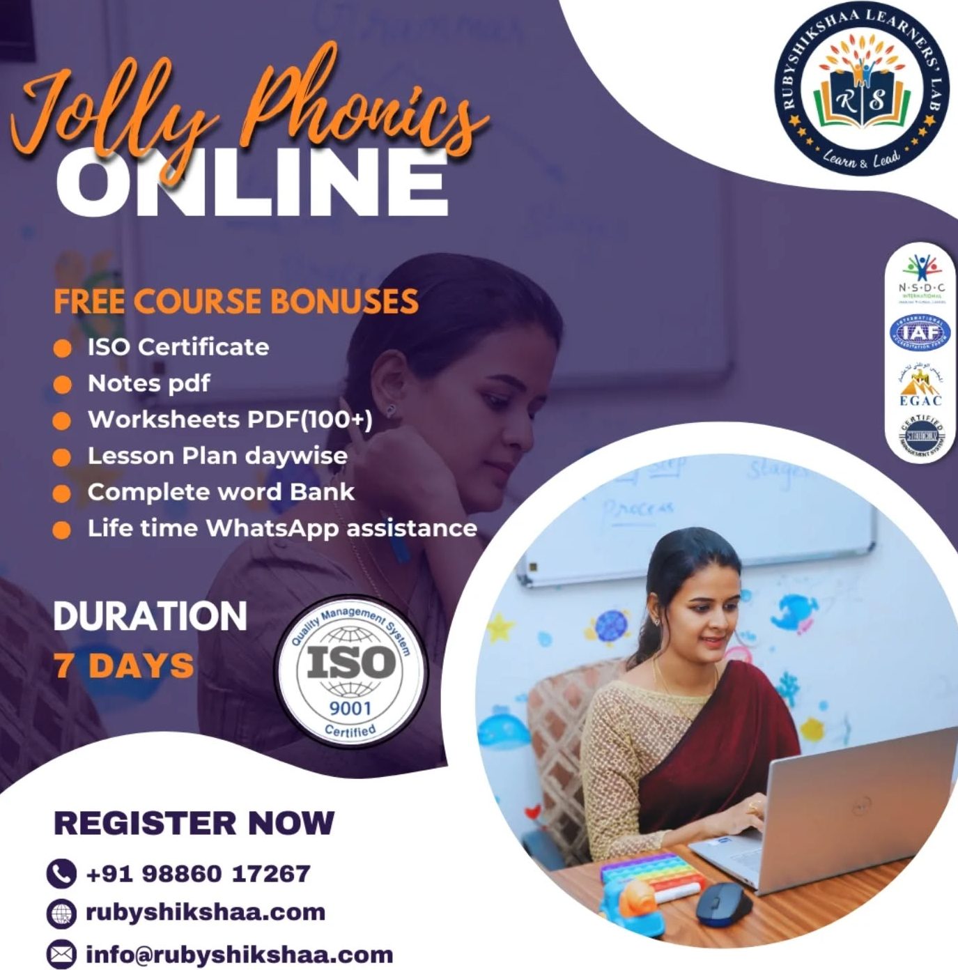 Mrs. Rupini Shanmugam has 13 years of professional experience and an internationally certified phonics trainer.